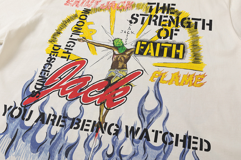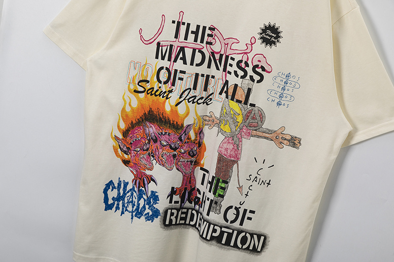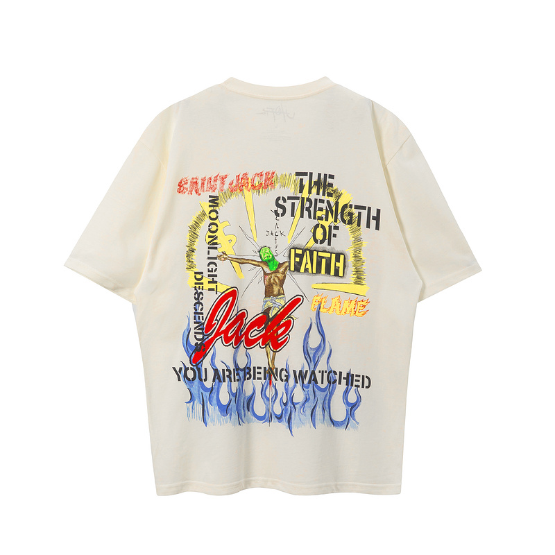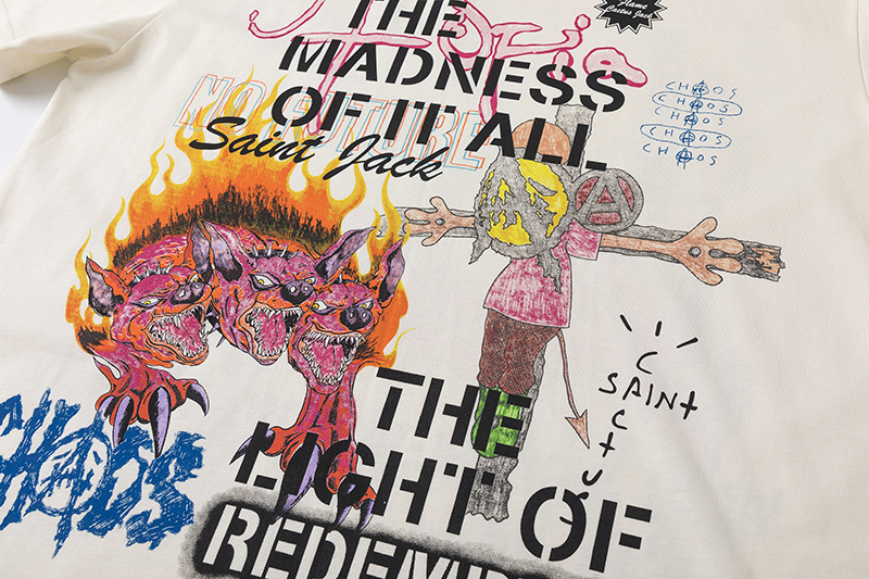 Трендовая в кремовом цвете футболка Cactus Jack x Saint Michael
