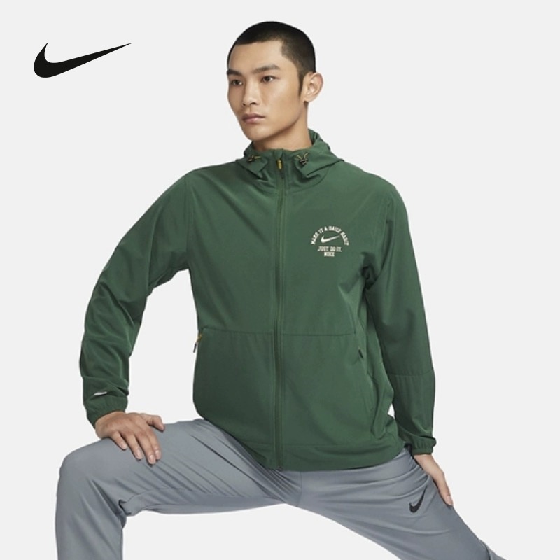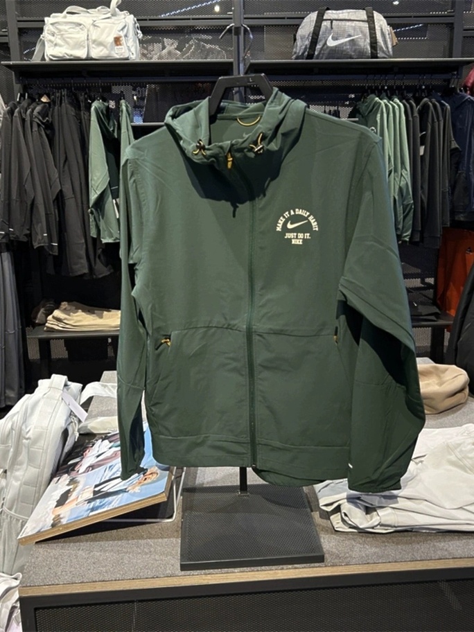Трендовая ветровка Nike в темно-зеленом цвете с капюшоном