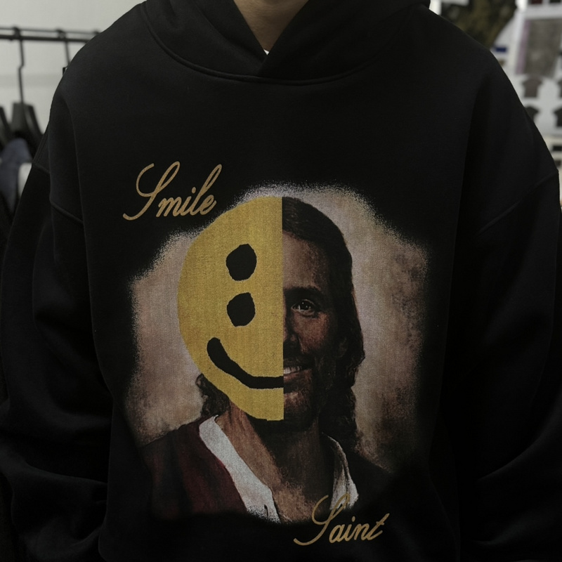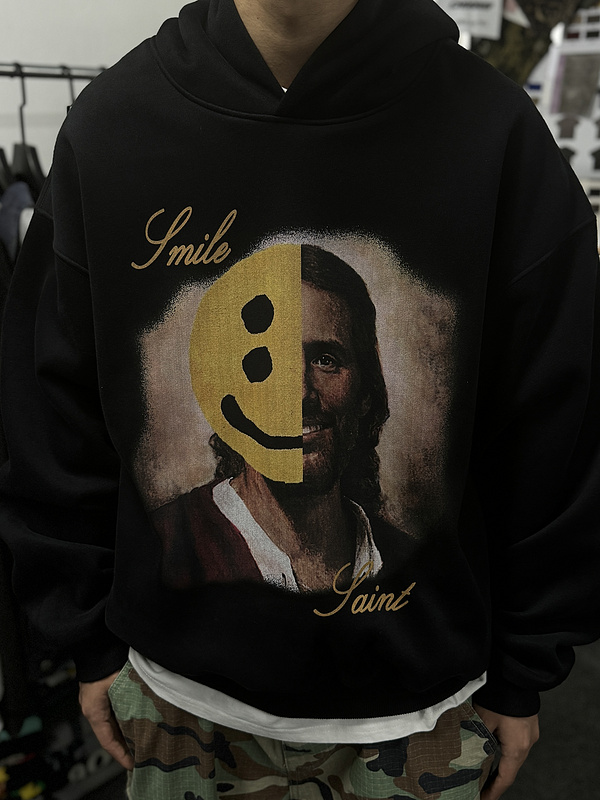 Трендовое с принтом Saint Michael худи в черном цвете с капюшоном