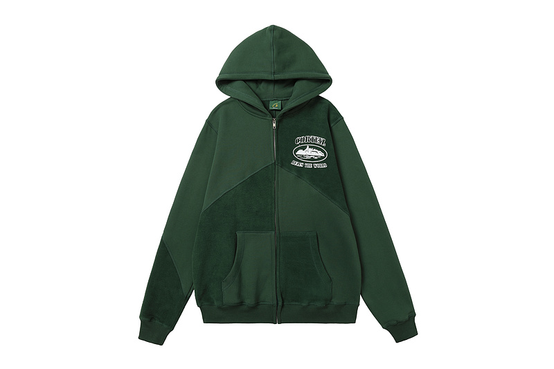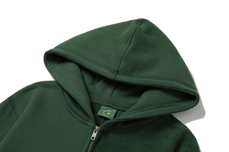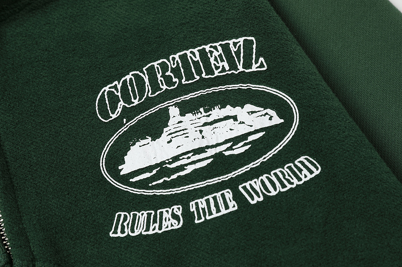Трикотажное зип худи Corteiz тёмно-зелёное с объёмным капюшоном