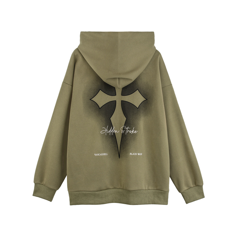 Цвета хаки VANCARHELL с надписью и логотипом базовое худи