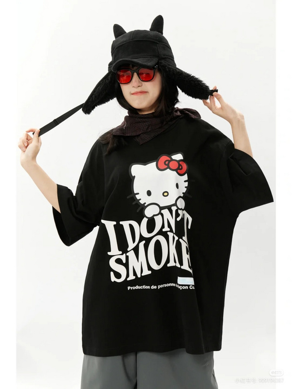 Удлинённая чёрная Donsmoke футболка с принтом "Hello Kitty"