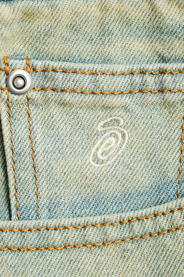 Шорты чёрные Dime с вышивкой в наличии — прямой крой, плотный деним, равномерный тёмный тон без блеска. Ткань гладкая, без жёсткости. Чёрный цвет глубокий, не линяет. Вышивка на левой ноге, ближе к нижнему краю, тонкая, чёткая, без смещений. Посадка средняя, пояс без утяжки. Классическая застёжка: молния, пуговица. Карманы стандартные — два спереди, два сзади, один дополнительный потайной.
