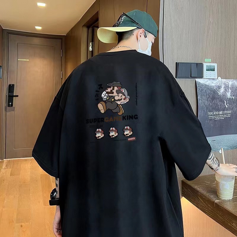 Удлинённая чёрная Nike с принтом на груди "Super Mario" футболка