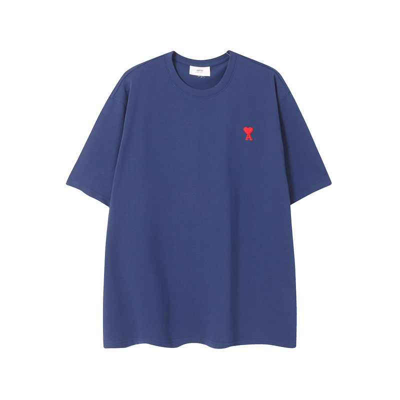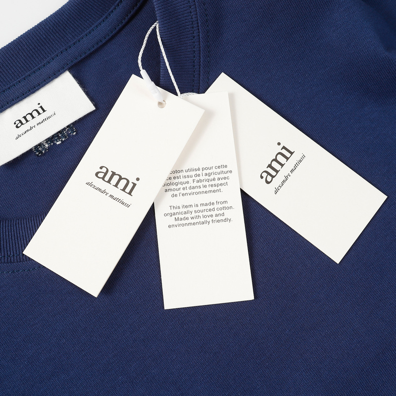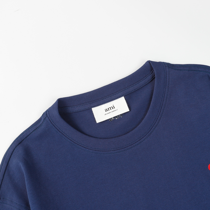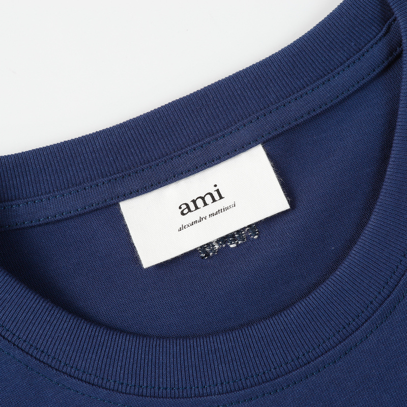Удлинённая оверсайз тёмно-синяя футболка от бренда AMI