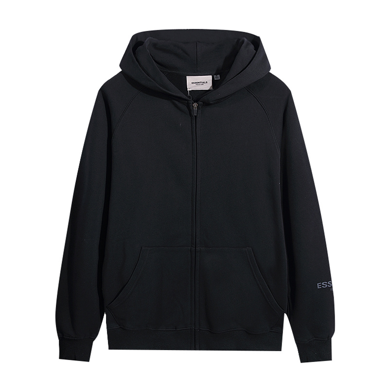 Удобное черного цвета зип худи от бренда ESSENTIALS FOG