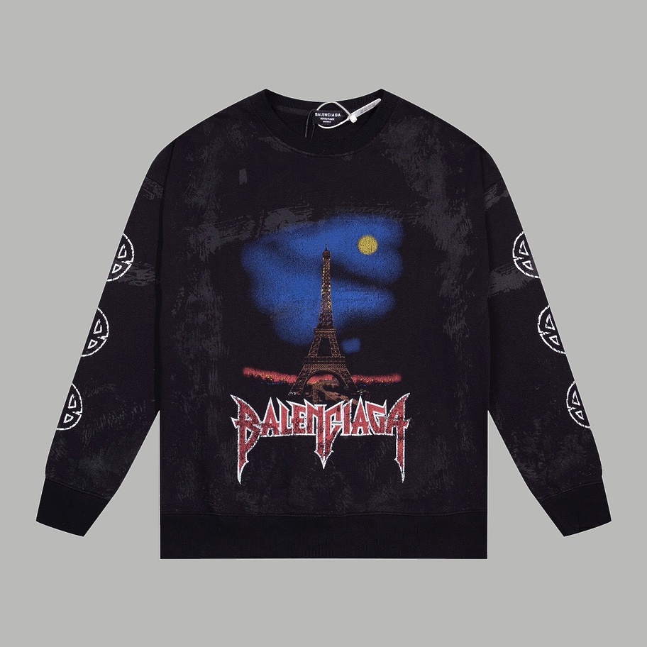 Удобный Balenciaga свитшот черного цвета с принтом башни