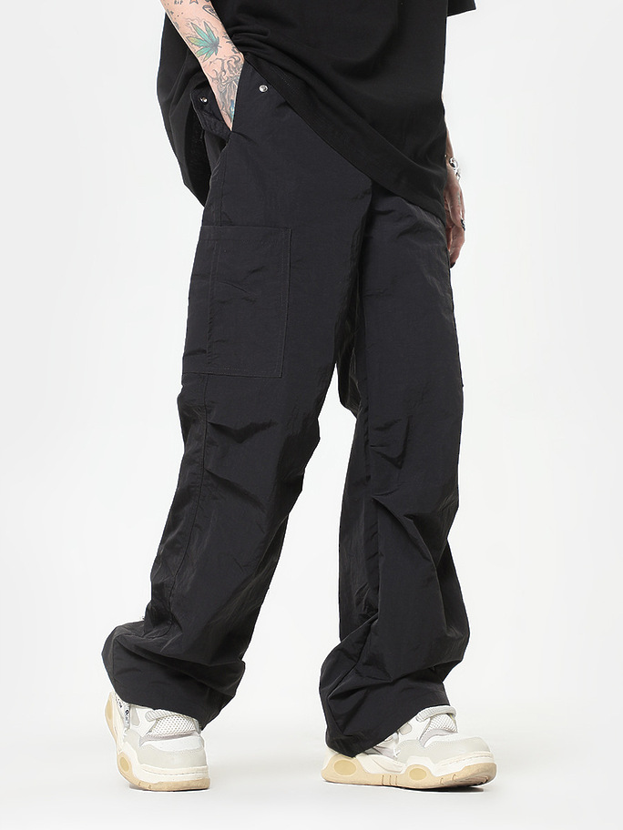 Унисекс чёрные штаны OREETA на резинке с открытыми боковыми карманами