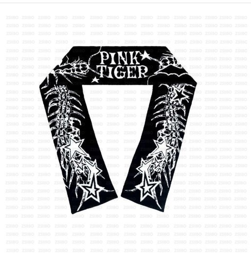 Унисекс чёрный широкий вязанный шарф с надписью "Pink Tiger"