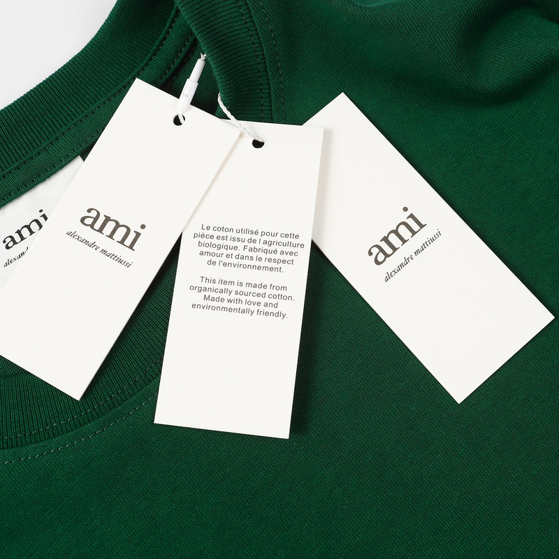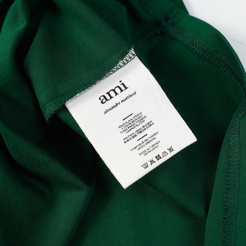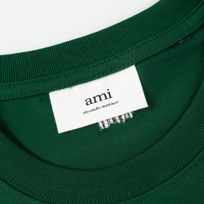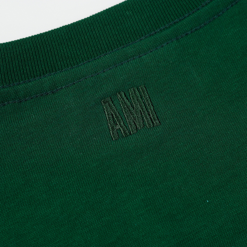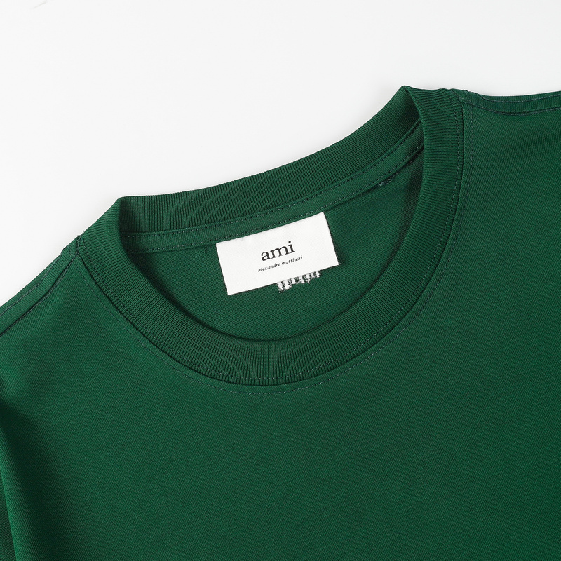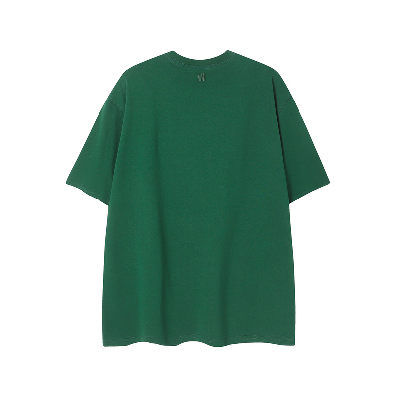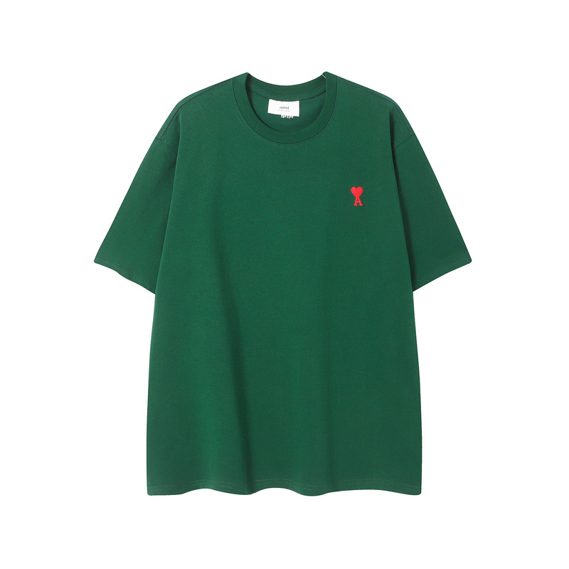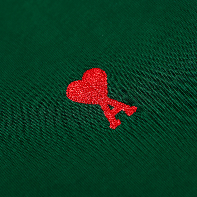 Унисекс футболка AMI тёмно-зелёная с вышитым сердцем на груди