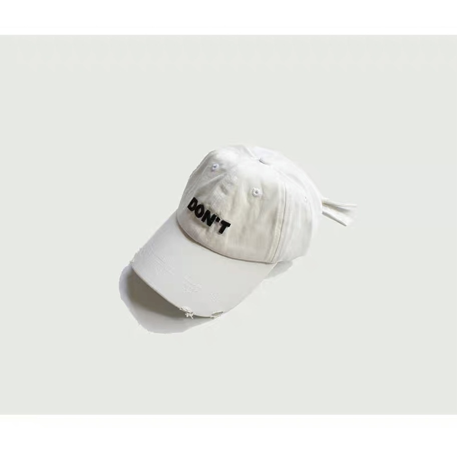 Универсальная белая с вышитой надписью "Don't" бейсболка с люверсами