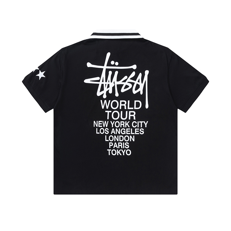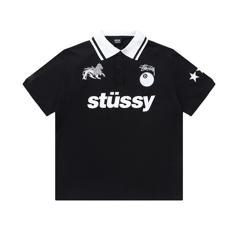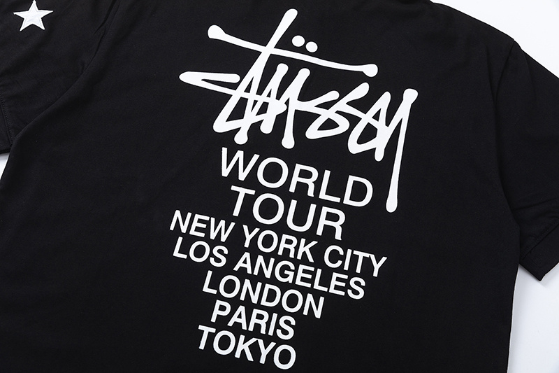 Универсальная футболка с принтом звезд Stussy в черном цвете