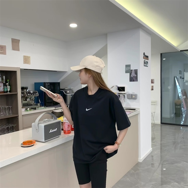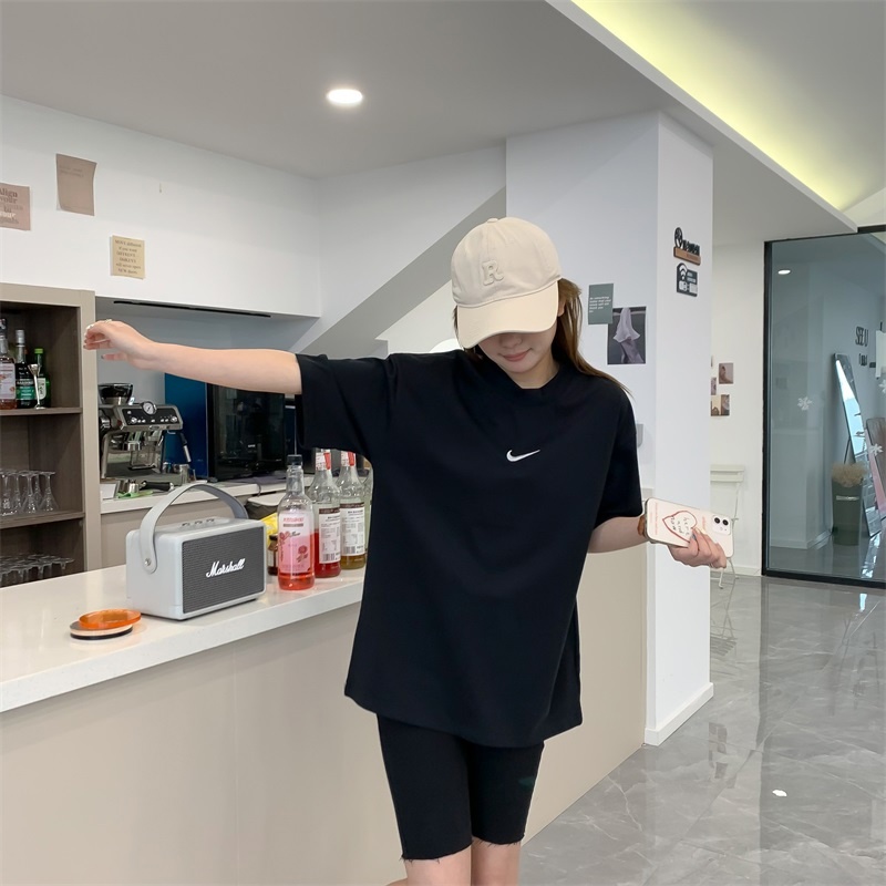 Универсальная Nike чёрная футболка изготовлена из натурального хлопка