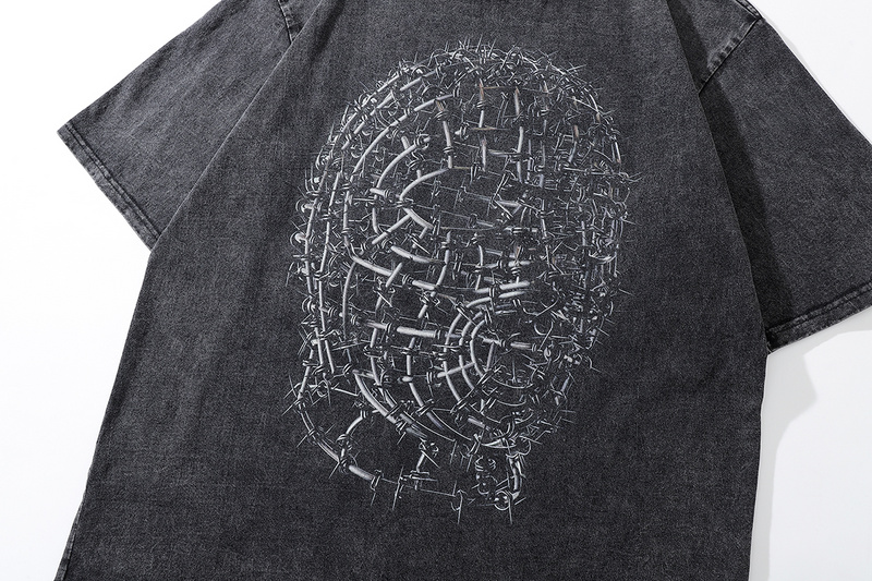 Универсальная TKPA чёрная выстиранная футболка с коротким рукавом