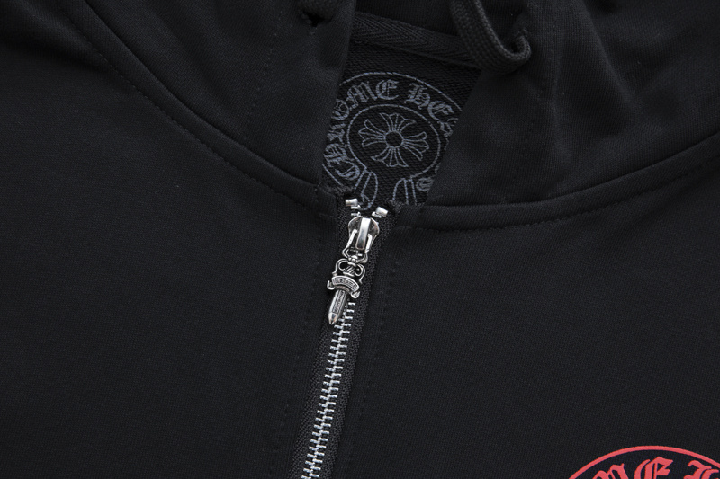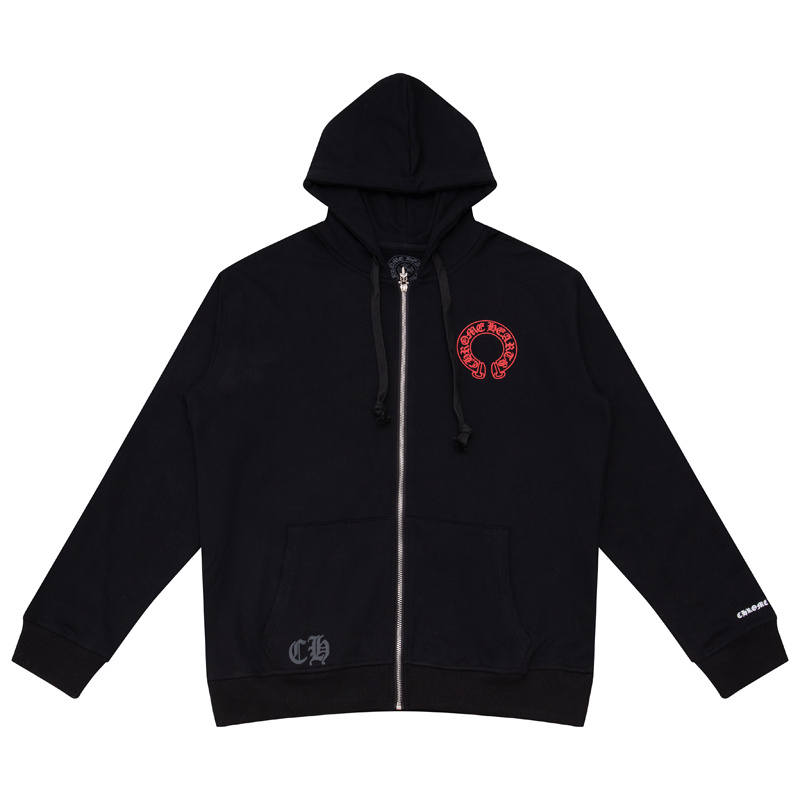 Универсальное чёрного-цвета зип худи Chrome Hearts с красной подковой
