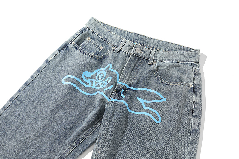Универсальные голубые от ICECREAM джинсы с принтом спереди и сзади