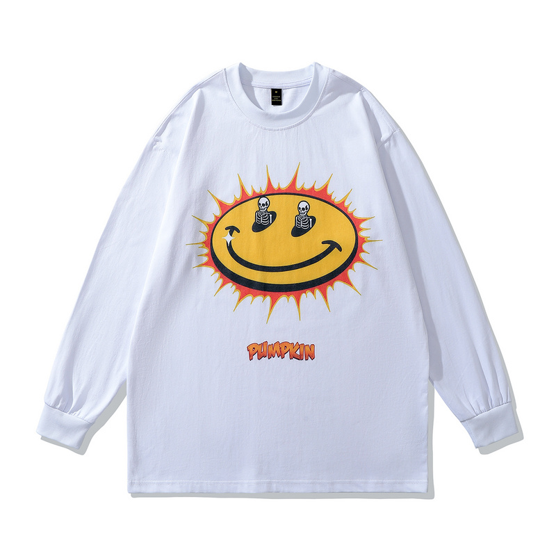 Универсальный белый лонгслив с качественным принтом "Солнце" от TKPA