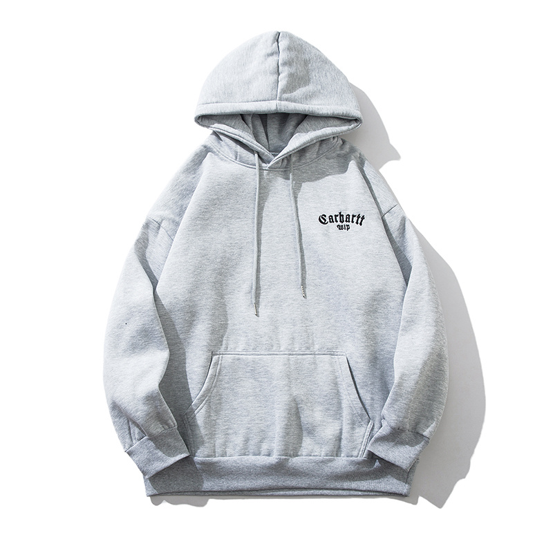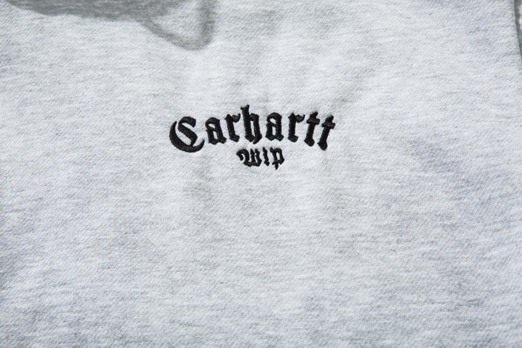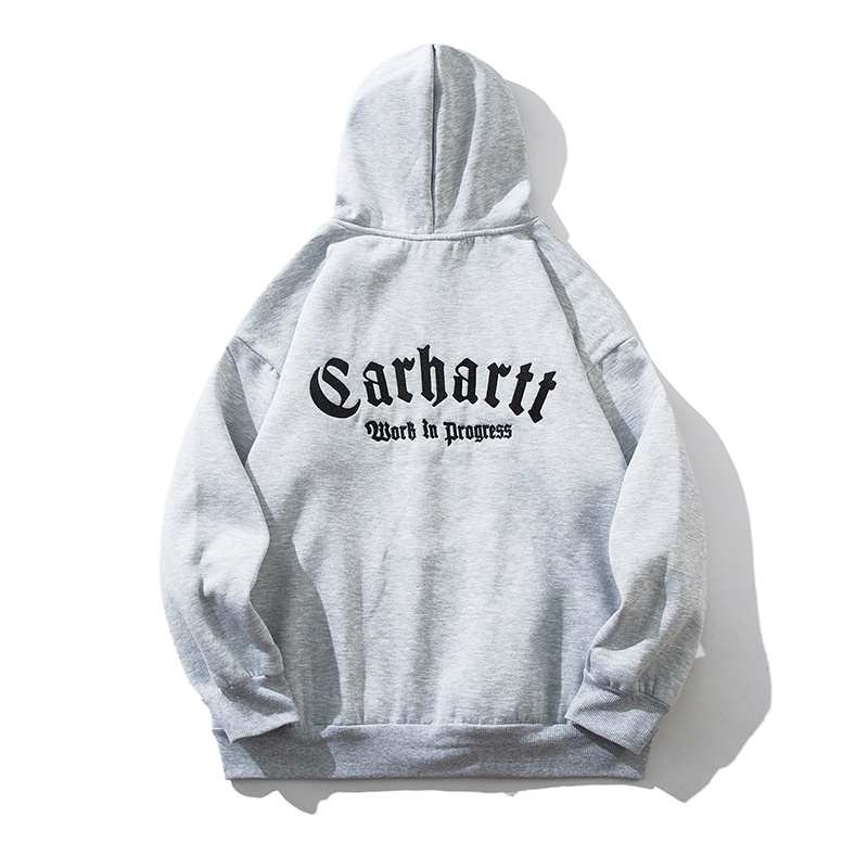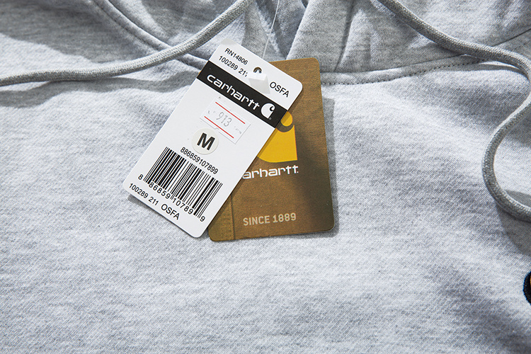 Утепленное серое худи с капюшоном и фирменным логотипом Carhartt
