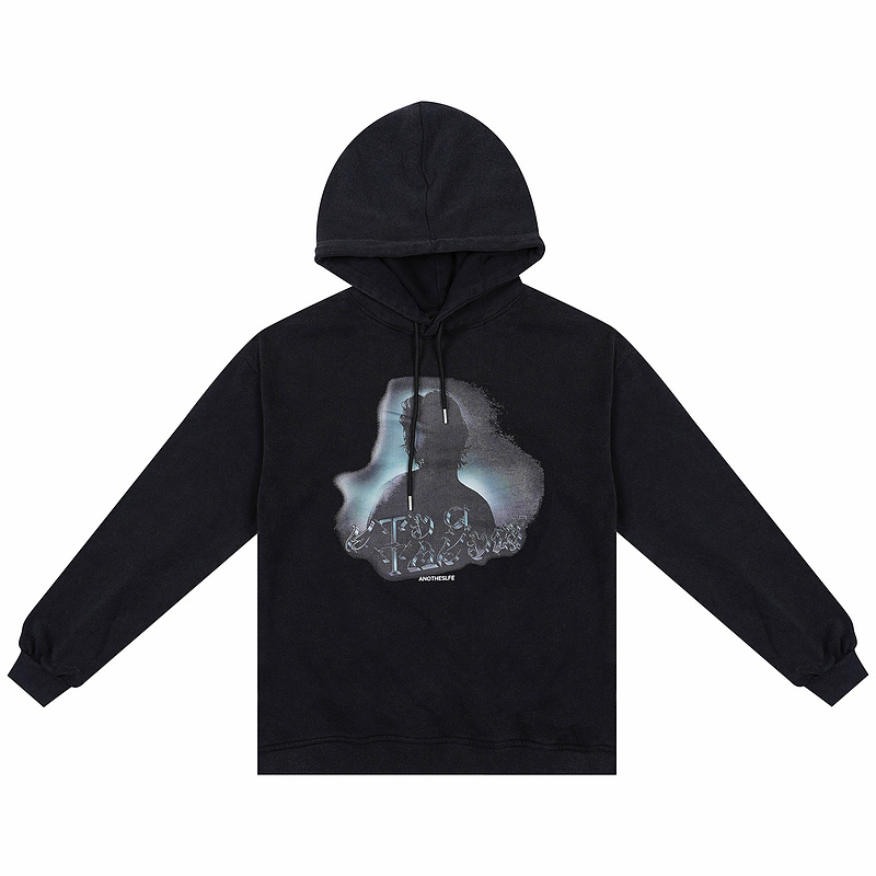 Уютная модель Anotherself черного худи со спущенной плечевой линией