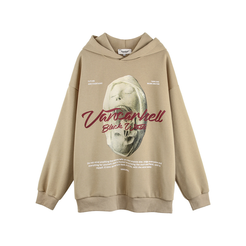Уютное бежевое худи VANCARHELL с рисунком "Отражение"
