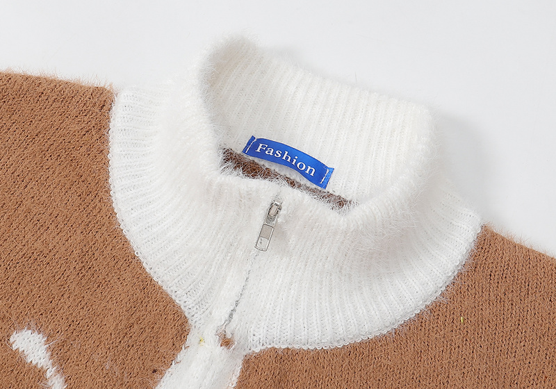 Уютный свитер с воротником стойка Fashion в бежевом цвете