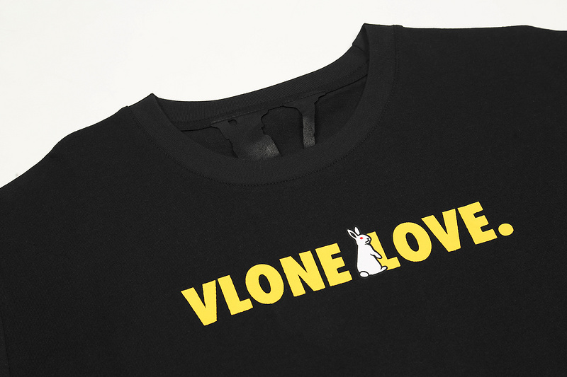 В черном цвете VLONE футболка с желтым лого и принтом "Кроличий секс"