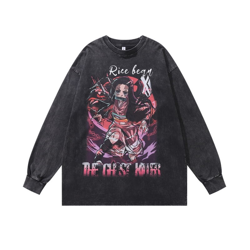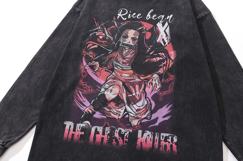 В готическом стиле с Аниме принтом лонгслив чёрный TKPA на каждый день