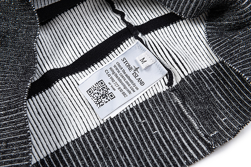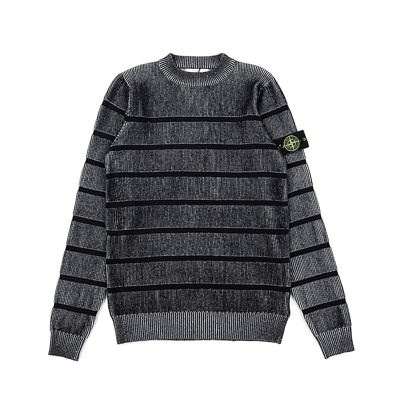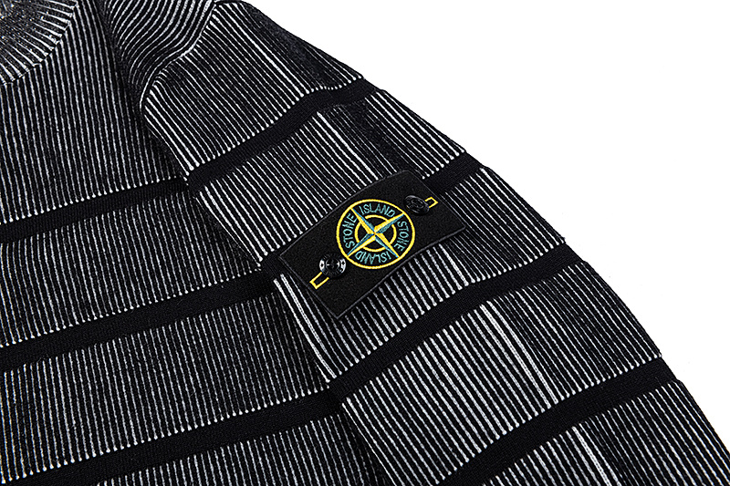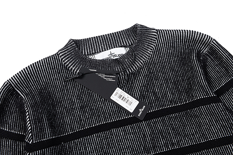 В полоску серый свитер Stone Island с нашитым фирменным патчем