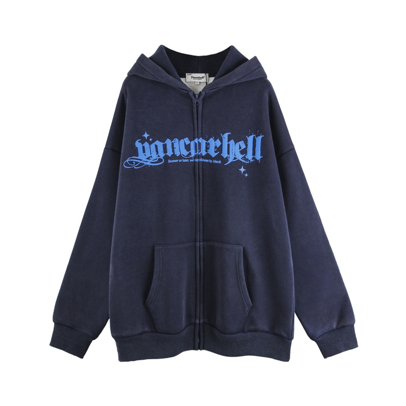 VANCARHELL зип худи темно-синее с рисунком прочное