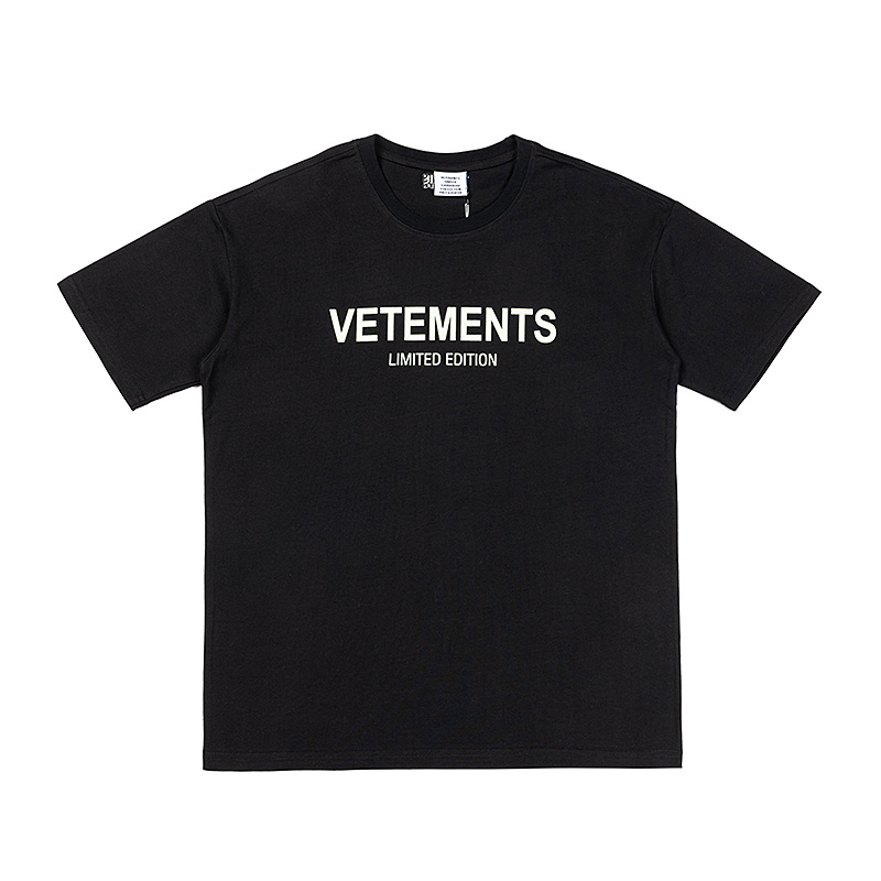 Vetements чёрная с логотипом на груди футболка свободного кроя