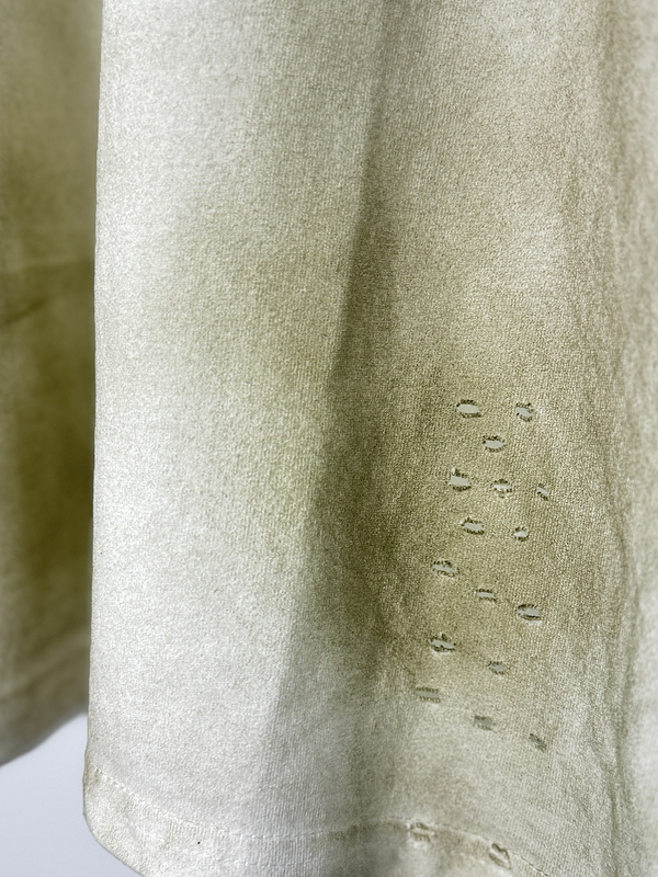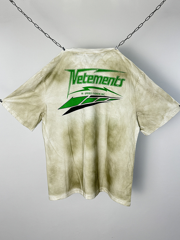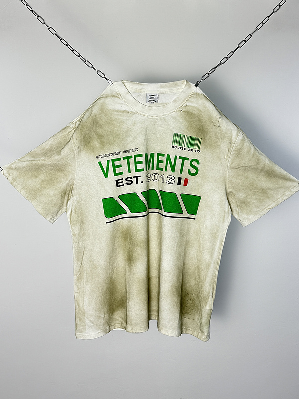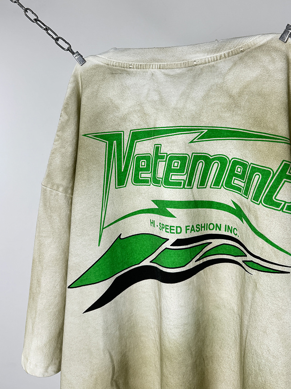 Vetements футболка белого цвета с зеленой надписью и потертостями