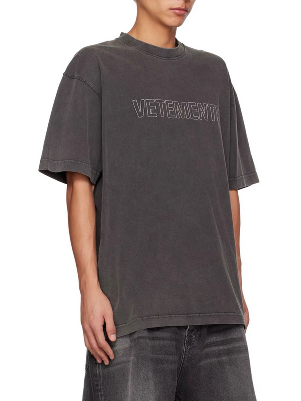 Футболка Vetements в сером цвете с опущенной плечевой линией