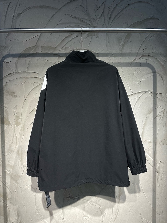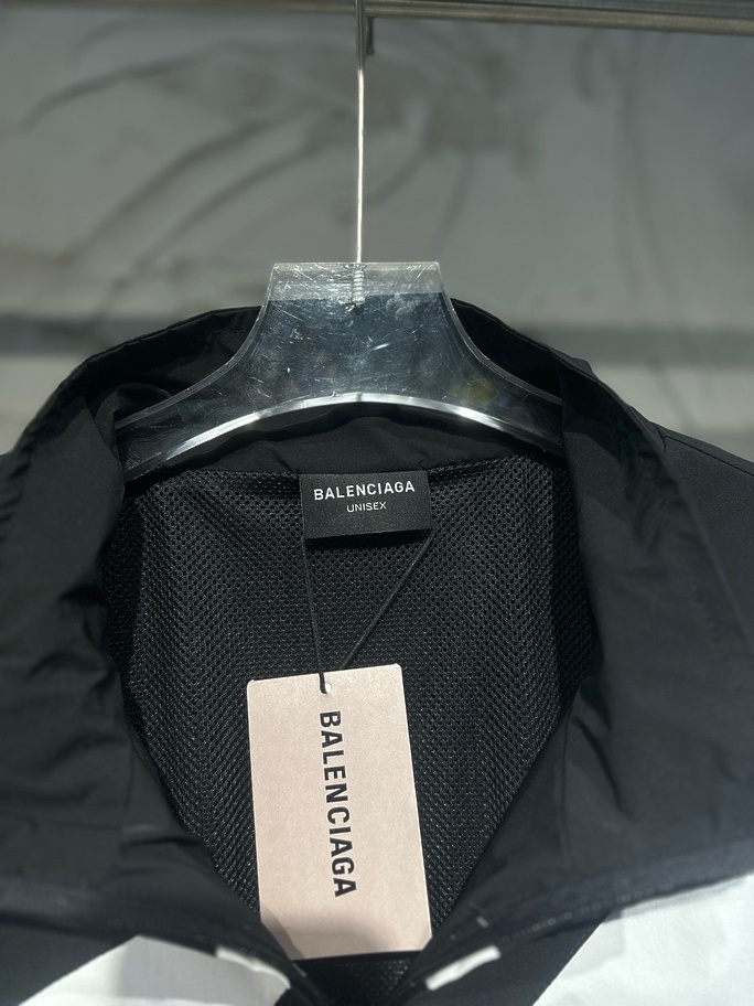 Длина до середины бедра, нижний край с регулировкой. Принт не трескается, выдерживает машинную стирку. Поверхность легко очищается от пыли. Стиль — повседневный, с акцентом на графику. Ткань не сковывает, структура держит объем. Цена на ветровку Balenciaga в черном цвете на молнии с рисунком соответствует качеству обработки и визуальному эффекту.