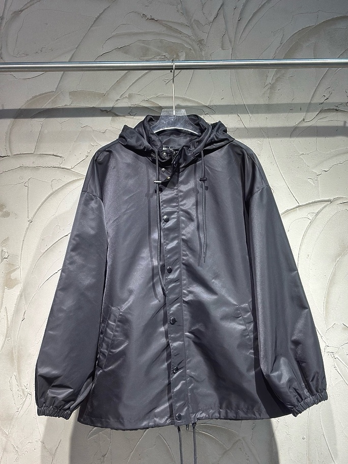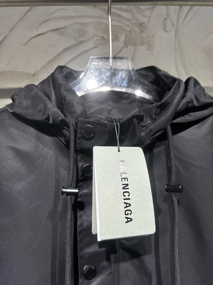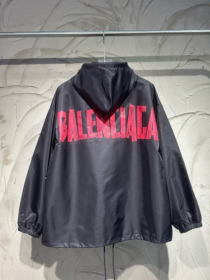 Ветровка Balenciaga в черном цвете с капюшоном и принтом на спине