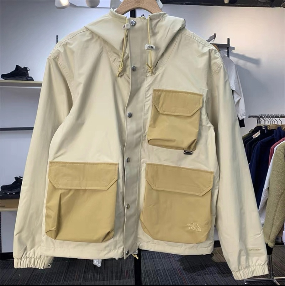Ветровка бежевая The North Face с объёмным капюшоном на завязках