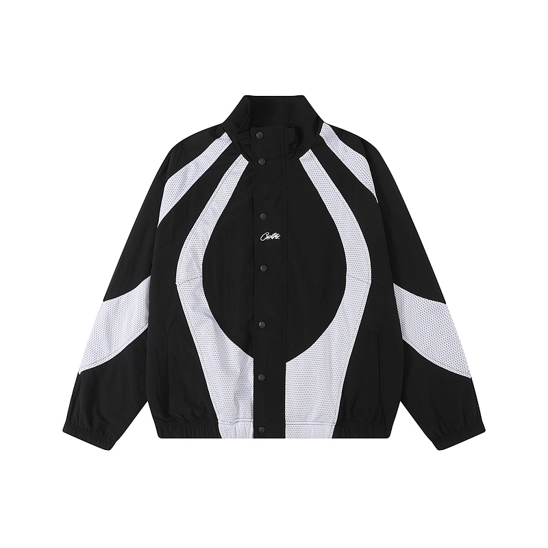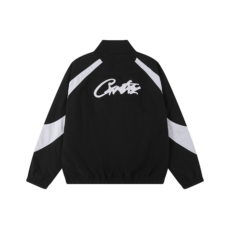Ветровка Corteiz чёрно-белая с сетчатыми вставками и манжетами