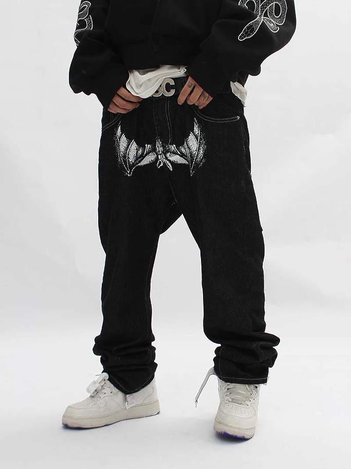 Vibe чёрные с принтом джинсы с 4-мя нашитыми карманами сзади