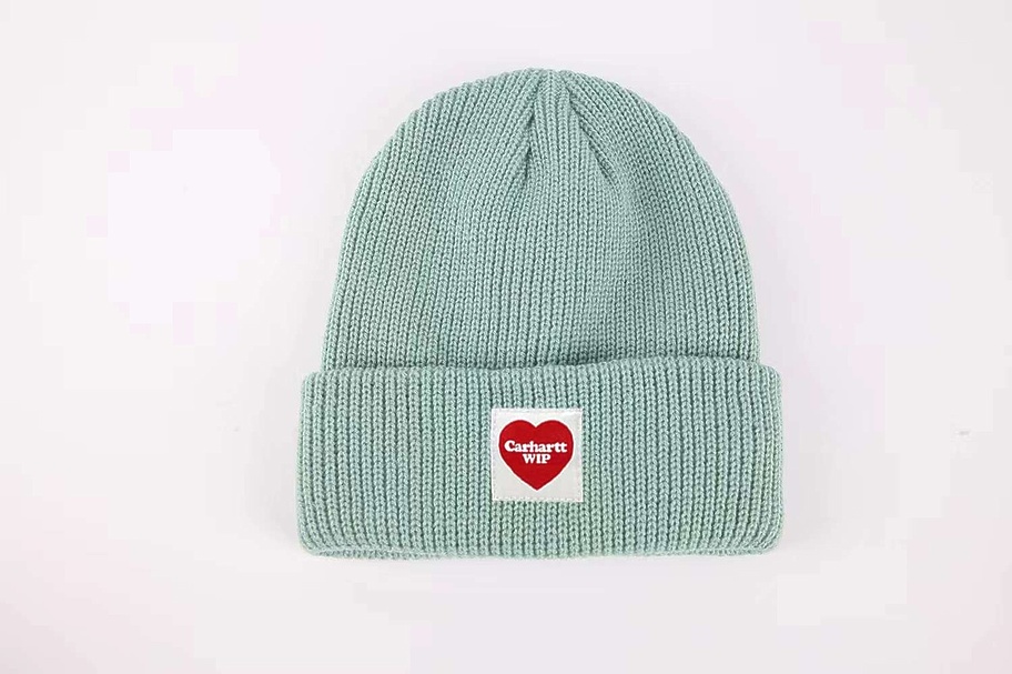 Вязанная трендовая шапка для с лого Carhartt оливковая