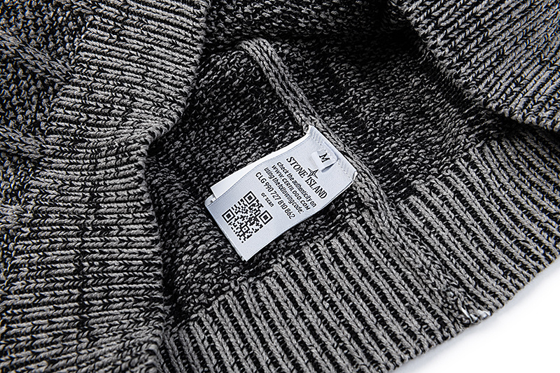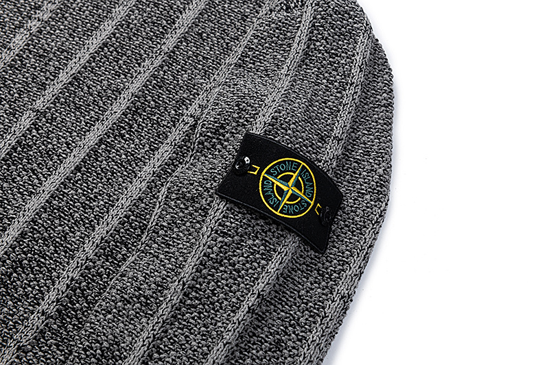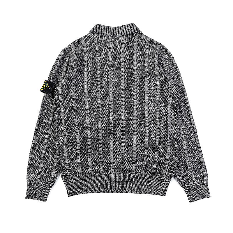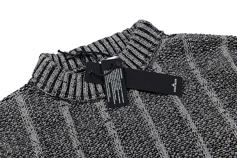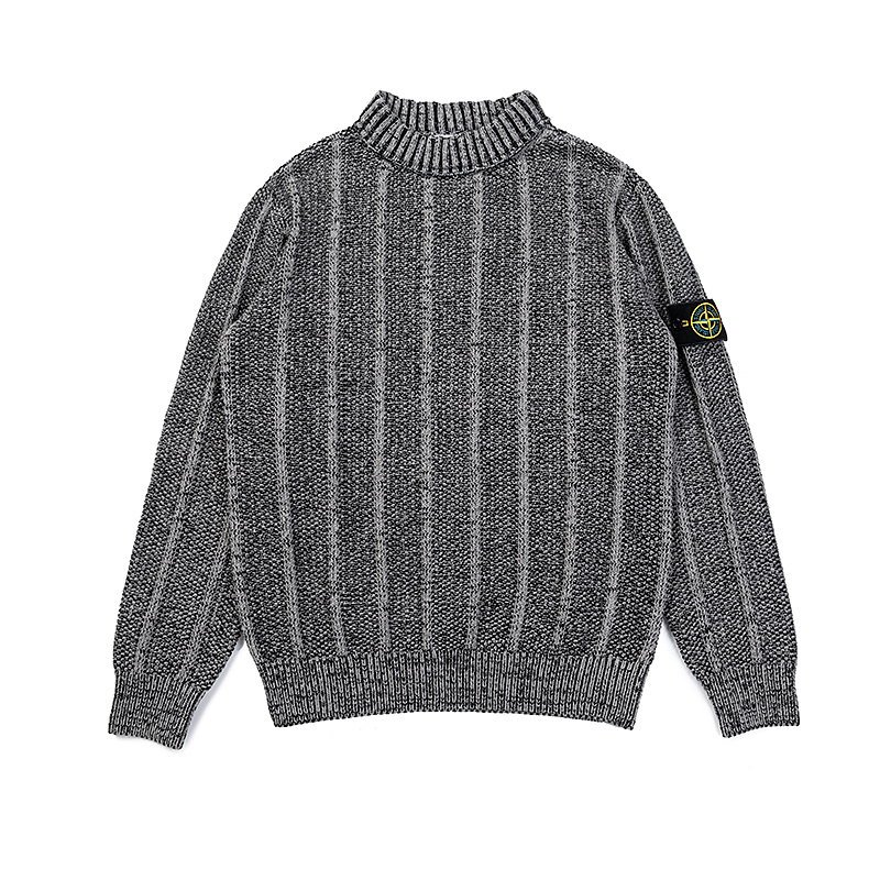 Вязаный в вертикалью полоску серый свитер с патчем Stone Island