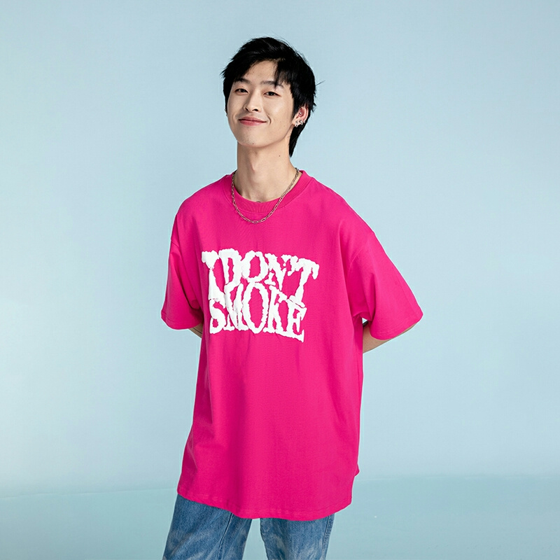 Яркая малиновая от Donsmoke футболка с фирменном надписью по центру
