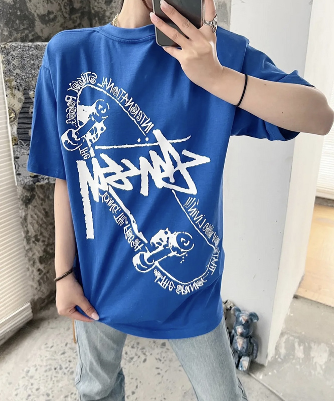 Ярко-синяя футболка Stussy с принтом в виде скейта