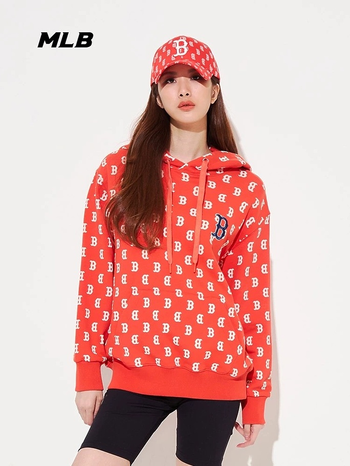 Яркое MLB красного-цвета зип-худи с капюшоном на завязках