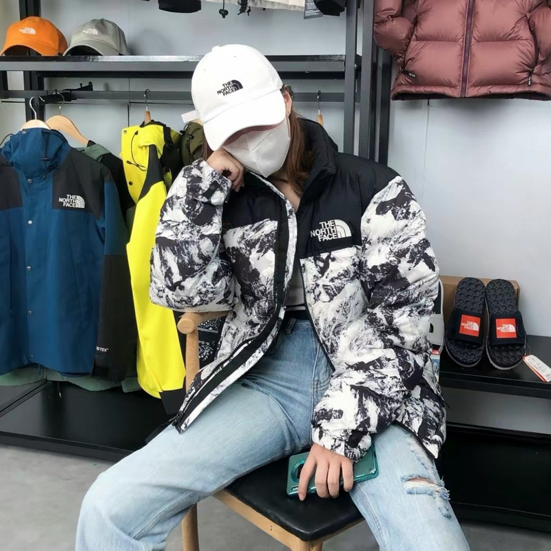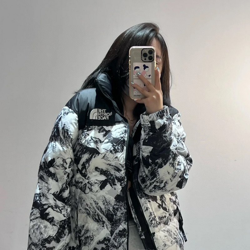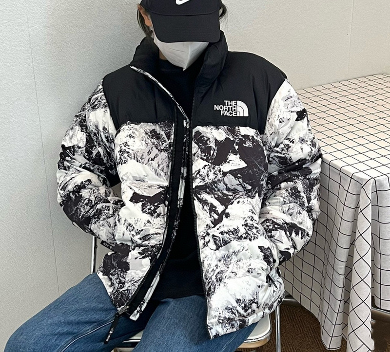 Запоминающаяся куртка The North Face выполнена в черно-белом цвете