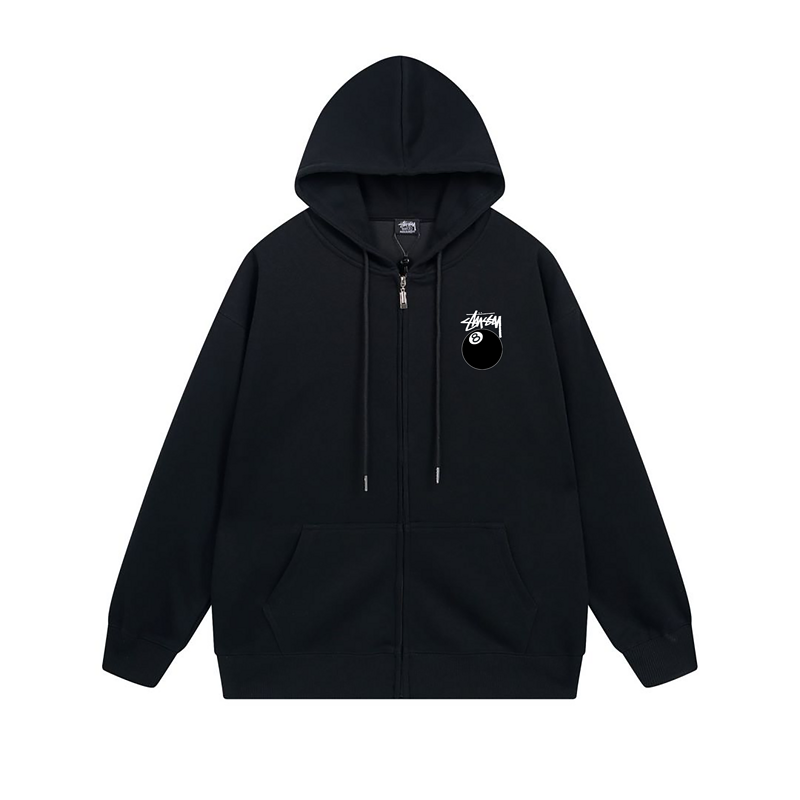 Запоминающееся Stussy зип худи черного цвета с черным рисунком