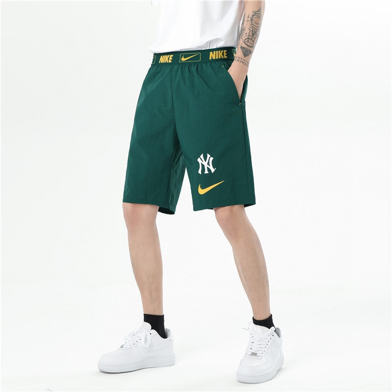 Зелёные с логотипом Nike & MLB шорты с карманами выполнены на резинке