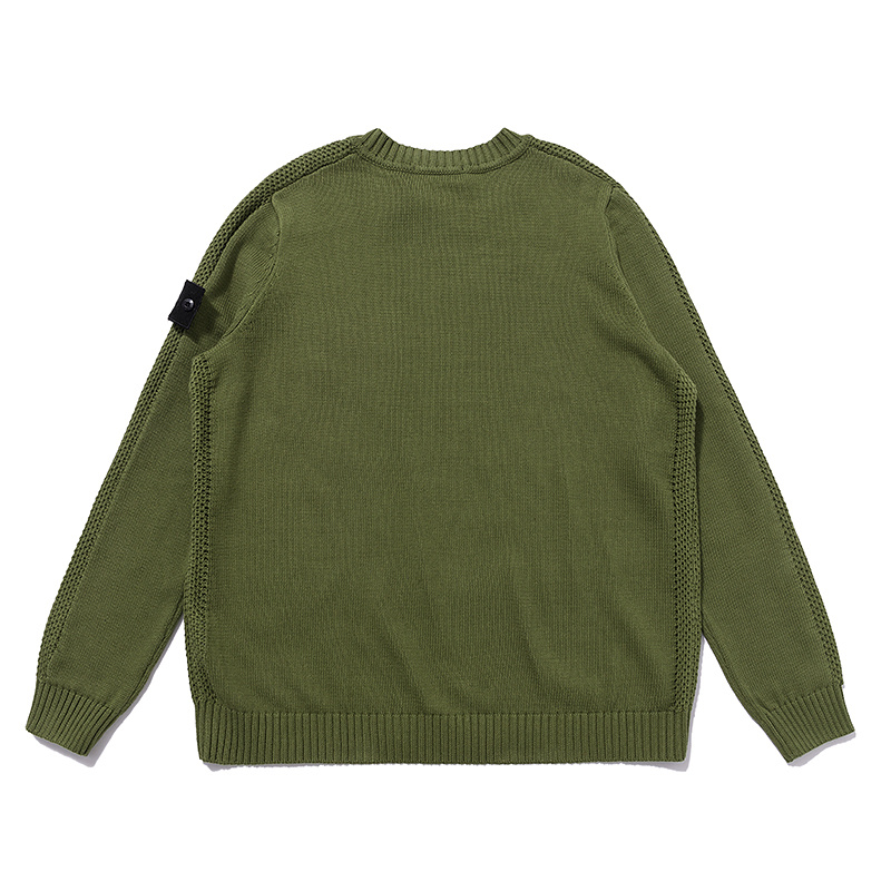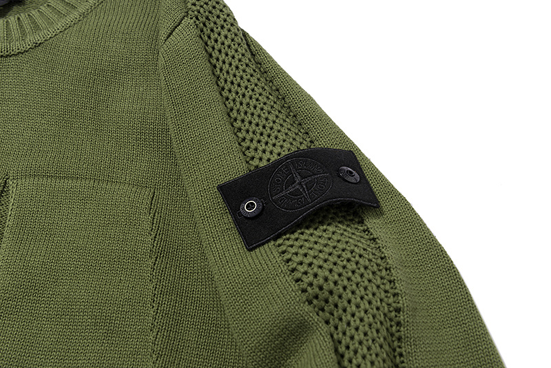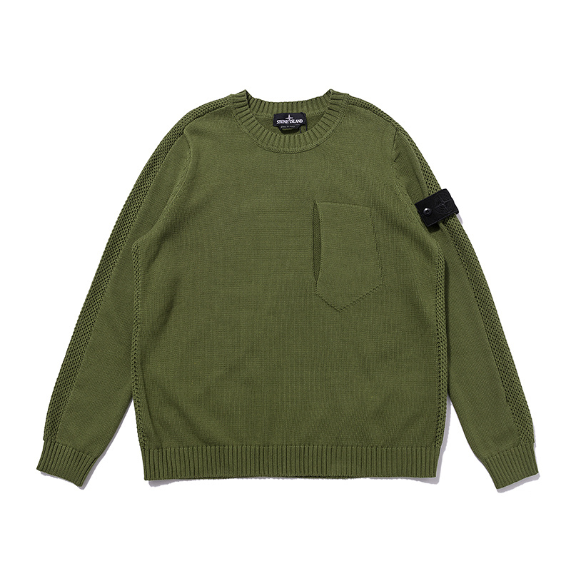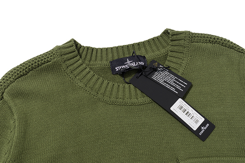 Зелёный Stone Island вязаный свитер с карманом на груди