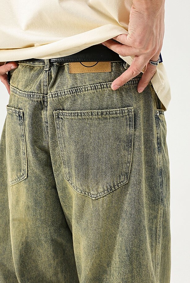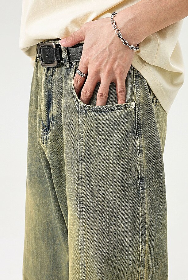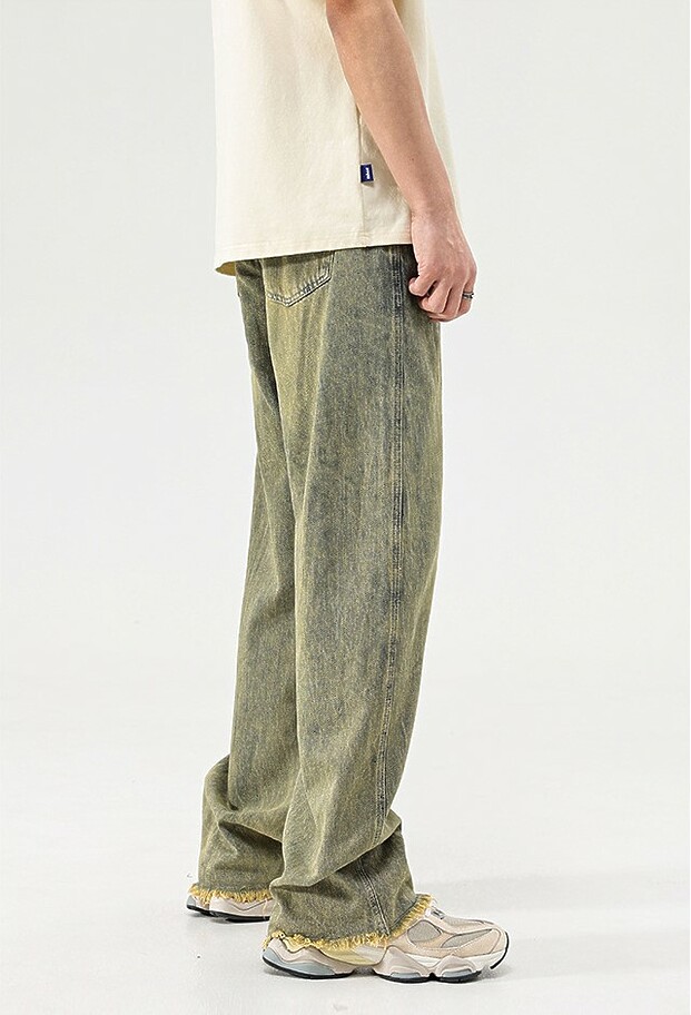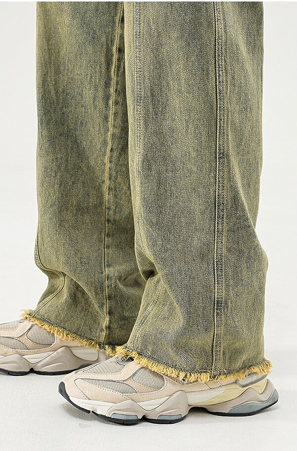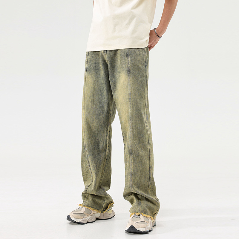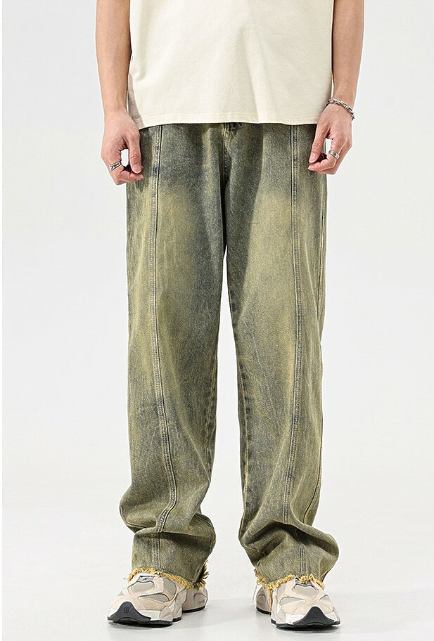 Жёлто-синие Locketomy джинсы с бахромой и швами по центру