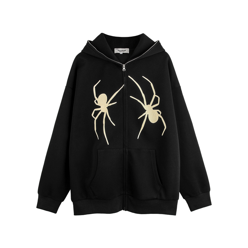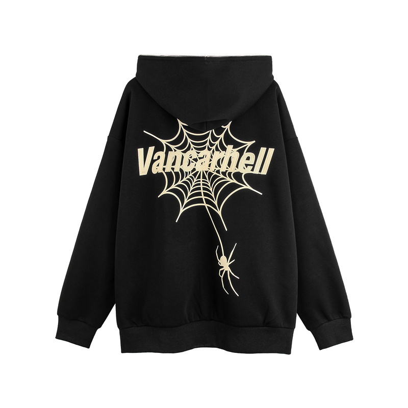 Зип худи черное VANCARHELL с фактурно нашитыми пауками