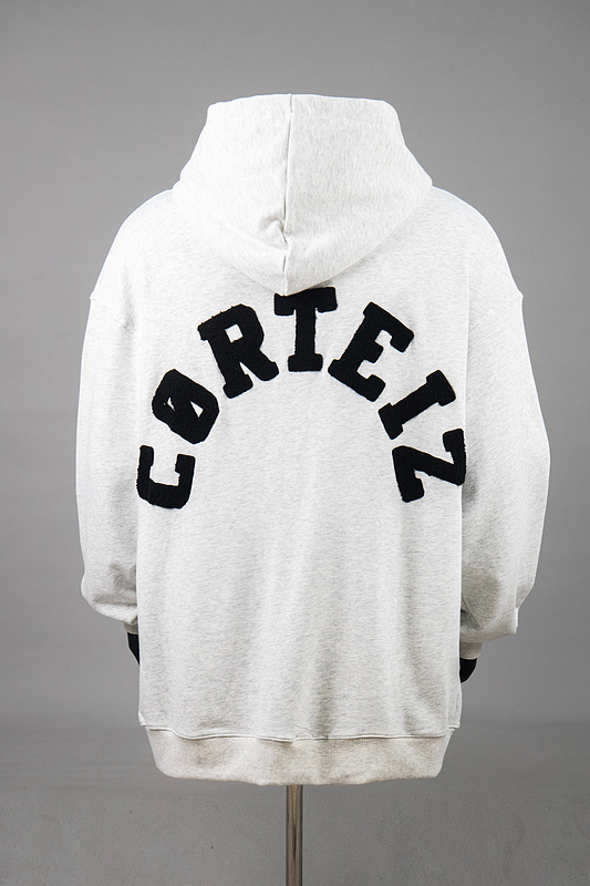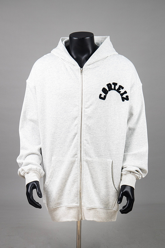 Зип худи Corteiz в светло-сером цвете с надписью бренда на спине
