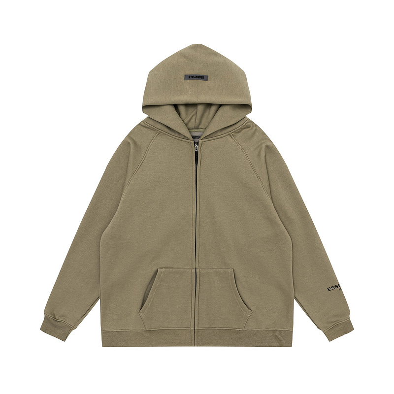 Зип худи essentials цвета хаки с карманами и фирменным принтом